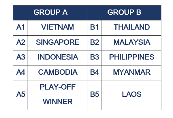 1. ตามหลักการวางโถ แชมป์เก่า เวียดนาม ถูกจับสลากอยู่ในตำแหน่ง A1 และรองแชมป์ ไทย อยู่ในตำแหน่ง B1