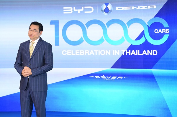 บริษัท บีวายดี ออโต้ (ประเทศไทย) จำกัด พร้อมด้วย บริษัท เรเว่ ออโตโมทีฟ จำกัด ภายใต้ กลุ่มธุรกิจเรเว่ ผู้จัดจำหน่ายและให้บริการหลังการขายรถยนต์พลังงานใหม่ บีวายดี และ เดนซ่า อย่างเป็นทางการในประเทศไทย ร่วมฉลองอีกความสำเร็จในโอกาสที่ บีวายดี ประเทศไทย ส่งมอบรถยนต์พลังงานใหม่ครบ 100,000 คันของประเทศไทย สะท้อนให้เห็นถึงความไว้วางใจที่ผู้บริโภคชาวไทย มีให้นวัตกรรมและคุณภาพของรถยนต์ บีวายดี ทั้งยังพิสูจน์ขีดความสามารถในการผลิตรถยนต์จากโรงงานของไทย ที่สำคัญ ยังช่วยลดมลพิษจากท้องถนนได้อีกด้วย พร้อมกันนั้น ยังมีการมอบรางวัล BYD KUNLUN AWARD ให้ผู้จำหน่ายและพนักงานขาย บีวายดี ซึ่งมีผลงานยอดเยี่ยมทั้งในด้านยอดขายและการให้บริการ ในพิธีมีผู้บริหารระดับสูงจากหลายภาคส่วน เข้าร่วมแสดงความยินดี ดังรายนามต่อไปนี้ นายหลิว เสวียเลี่ยง ผู้จัดการทั่วไป ฝ่ายขายประจำภูมิภาคเอเชียแปซิฟิก บริษัท บีวายดี ออโต้ อินดัสทรี จำกัด, นายหยู่ปิน เคอ ผู้จัดการทั่วไป บริษัท บีวายดี ออโต้ (ประเทศไทย) จำกัด, นายประธานวงศ์ พรประภา ประธานเจ้าหน้าที่บริหาร กลุ่มธุรกิจเรเว่, ดร. ธัชพล ภัทรไชยประภา ประธานบริหาร กลุ่มธุรกิจเรเว่, นายวิศิษฎ์ พิทยะวิริยากุล ประธานบริหาร บริษัท เรเว่ ออโตโมทีฟ จำกัด และนายกร ทัพพะรังสี นายกสมาคมมิตรภาพไทย-จีน
