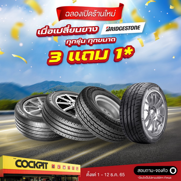 - เมื่อซื้อยาง Bridgestone หรือ Firestone ครบ 3 เส้น แถมฟรี 1 เส้น (ทุกรุ่น ทุกขนาด) ผลิตภัณฑ์อื่น ๆ