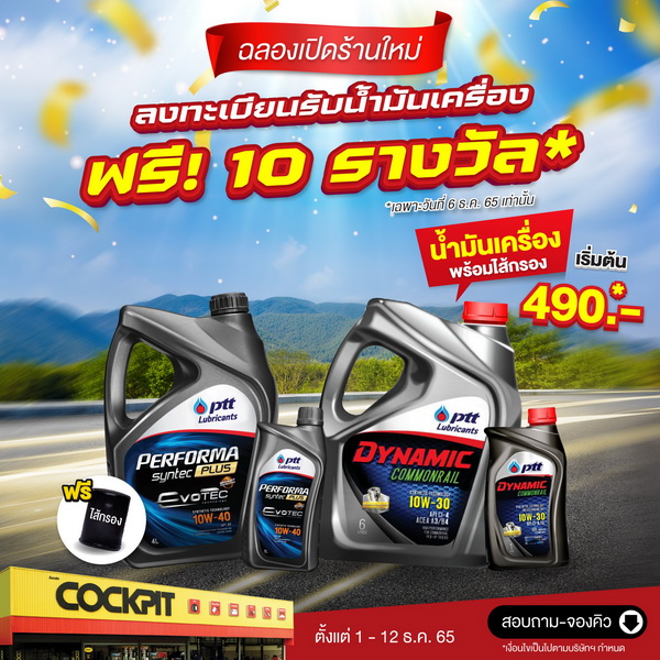 *หมายเหตุ: โปรโมชั่นระหว่างวันที่ 1-12 ธันวาคม 2565 และเงื่อนไขของโปรโมชั่นเป็นไปตามที่บริษัทฯ กำหนด โดยสามารถติดตามข้อมูลเพิ่มเติมได้ที่ www.cockpit.co.th. หรือ www.facebook.com/CockpitTH แผนกลูกค้าสัมพันธ์ โทร.1369