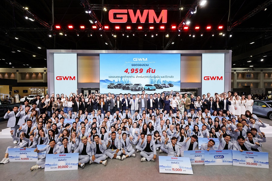 GWM (Thailand) ยกระดับสู่การเป็นแบรนด์รถยนต์ที่มีผลิตภัณฑ์ครอบคลุมทุกประเภทพลังงานที่ตอบสนองความต้องการของผู้ใช้งานทั่วทุกมุมโลก ด้วยแนวคิด “ครอบคลุมทุกการใช้งาน (All Scenarios) ด้วยผลิตภัณฑ์ที่ครอบคลุมทุกพลังงาน (All Powertrains) สู่การตอบสนองทุกกลุ่มผู้ใช้งานอย่างแท้จริง (All Users)” ล่าสุด ประกาศความสำเร็จจากงานมหกรรมยานยนต์ครั้งที่ 46 จากกระแสตอบรับอย่างล้นหลามจากลูกค้าทั้งชาวไทยและต่างประเทศ พร้อมปิดยอดจองสะสมรวมทั้งสิ้น 4,959 คัน โดยรถยนต์รุ่นยอดนิยม 3 อันดับแรก นำโดย NEW GWM TANK 300 DIESEL ที่สร้างปรากฏการณ์ใหม่ให้กับวงการรถยนต์ดีเซลในประเทศไทย ครองใจสายลุยทั้งในเมืองและนอกเมือง ด้วยดีไซน์เป็นเอกลักษณ์และขุมพลังจากเครื่องยนต์ดีเซล 2.4T เจนฯ ใหม่ล่าสุด ด้วยยอดจองสูงถึง 2,786 คัน สะท้อนความเชื่อมั่นของลูกค้าและความแข็งแกร่งของแบรนด์ในประเทศไทย ตอกย้ำความสำเร็จของ GWM หลังเปิดศักราชใหม่ได้ไม่นาน
