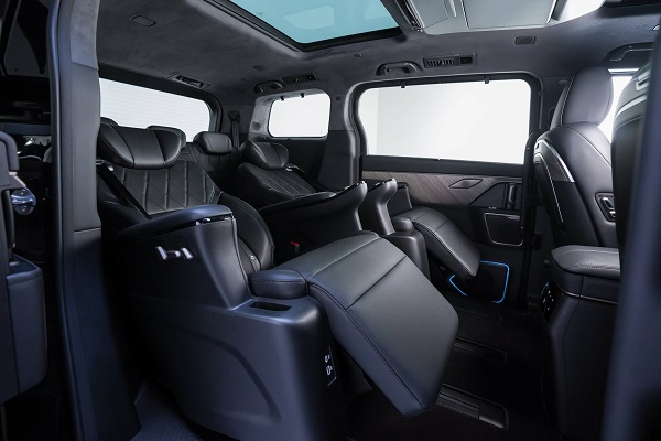 Comfort ความสบายเหนือระดับที่สัมผัสได้จริง : ภายในห้องโดยสารถูกออกแบบให้โปร่งโล่ง เดินผ่านสะดวกด้วยช่องกลางที่กว้างถึง 170 มิลลิเมตร นอกจากนี้ เบาะยังหุ้มด้วยหนัง Nappa คุณภาพสูงที่ให้สัมผัสนุ่ม หรูหรา ระบายอากาศได้ดี เบาะแถวสองแบบ Zero Gravity Seat ออกแบบตามหลักสรีรศาสตร์ของสภาวะไร้น้ำหนักในเทคโนโลยีอวกาศของ NASA ปรับเข้ามุม Golden Angle เพื่อให้หัวใจและหัวเข่าอยู่ระดับเดียวกัน มอบความสบายเกินพิกัด รองรับการเดินทางยาว ๆ ของผู้บริหาร เพิ่มความผ่อนคลายด้วยระบบนวดไฟฟ้า 6 โหมด ระบบระบายอากาศ พร้อมตู้เย็นภายในรถขนาดใหญ่ 12.5 ลิตร เปิดได้ทั้งด้านหน้า (Front Armrest) และด้านหลังแบบลิ้นชัก รองรับทั้งโหมดทำความเย็น 0–15°C และโหมดอุ่น 35–50°C มอบความสะดวกสบายขั้นสุดให้กับทุกการเดินทาง