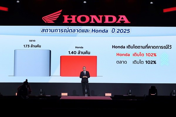 มร.ยูอิจิ ชิมิซุ ประธานกรรมการบริหาร บริษัท ไทยฮอนด้า จำกัด กล่าวว่า “ไทยฮอนด้าให้ความสำคัญกับการพัฒนาผลิตภัณฑ์ บริการ และเทคโนโลยีอย่างต่อเนื่อง เพื่อรองรับความต้องการที่หลากหลายของผู้ใช้งานในชีวิตประจำวัน ประเทศไทยถือเป็นหนึ่งในตลาดยุทธศาสตร์ที่สำคัญของฮอนด้าในภูมิภาคเอเชีย และเป็นศูนย์กลางหลักของธุรกิจรถจักรยานยนต์ในระดับภูมิภาค ในปี 2025 ที่ผ่านมา ตลาดรถจักรยานยนต์ไทยโดยรวมอยู่ที่ 1.73 ล้านคัน ไทยฮอนด้าสามารถสร้างผลงานได้อย่างแข็งแกร่ง ด้วยยอดจำหน่ายรถจักรยานยนต์กว่า 1.40 ล้านคัน เติบโต 102% เมื่อเทียบกับปีก่อนหน้า และครองตำแหน่งผู้นำตลาดรถจักรยานยนต์ในประเทศไทยอย่างต่อเนื่องเป็นปีที่ 37 ความสำเร็จดังกล่าวสะท้อนถึงความแข็งแกร่ง และการสนับสนุนอย่างใกล้ชิดจากเครือข่ายผู้จำหน่ายทั่วประเทศ”