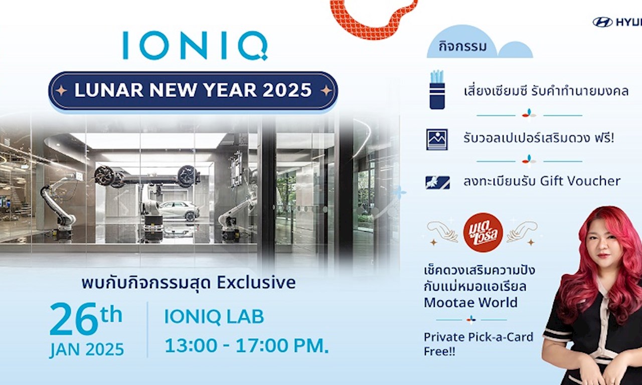 ฮุนไดชวนคุณเปิดศักราชใหม่ให้สุดปัง! เปิดบ้านฉลองเทศกาล Lunar New Year 2025 ต้อนรับสิ่งดี ๆ ภายใต้การตกแต่งธีมปีมะเส็งสุดอลังการ พร้อมกิจกรรมมากมายที่สายมูห้ามพลาด! เพียงลงทะเบียนร่วมกิจกรรมรับขวัญถุงทันที พร้อมฟรี Wallpaper เสริมดวง อีกทั้งกิจกรรมเสี่ยงเซียมซีรับคำทำนายโชคชะตาจากวัดกัลยาณมิตรวรมหาวิหาร วัดดังย่านฝั่งธน พิเศษเฉพาะวันที่ 26 ม.ค. กับไฮไลต์กระทบไหล่หมอดูคนดังจากเพจมูเตเวิร์ล Mootae World เปิดคำทำนายราศีไหนจะปังหรือราศีไหนต้องระวัง! ใครจะมีเกณฑ์ออกรถใหม่พร้อมทิปเลือกสีรถตามราศี และอีกมากมาย
