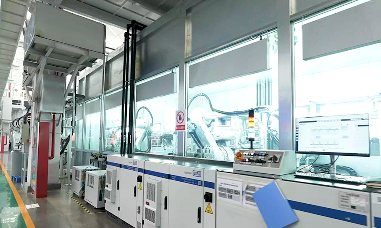 กระจกของชุดกระจกบังลมด้านหน้าและด้านหลังใช้โซลูชันที่ครบวงจรในอุตสาหกรรม ด้วยหุ่นยนต์ในการประกอบอัตโนมัติที่มีความแม่นยำสูง จำนวน 9 ตัว ประกอบด้วย ระบบเคลื่อนย้ายอัตโนมัติ ระบบทำความสะอาดกระจก ระบบพ่นสีรองพื้นกระจกอัตโนมัติ ระบบติดกาว และระบบประกอบอัตโนมัติ ที่มีความแม่นยำในระดับ 0.05 มิลลิเมตร สามารถประกอบได้สูงสุด 60 คันต่อชั่วโมง พร้อมกันหลายรุ่นในไลน์ผลิตเดียวกัน ด้วยคุณภาพสูงที่เสถียร พร้อมเทคโนโลยีการถ่ายภาพ ประมวลผลภาพ 3 มิติ และระบบอัลกอริธึมวิเคราะห์คุณภาพการประกอบแบบเรียลไทม์ เพื่อตรวจหาตำหนิจากการเคลือบ ซึ่งสามารถรับประกันประสิทธิภาพ และความสม่ำเสมอของผลิตภัณฑ์ได้แม่นยำ