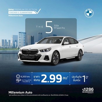 บริษัท มิลเลนเนียม ออโต้ กรุ๊ป จำกัด ผู้จำหน่ายรถยนต์ บีเอ็มดับเบิลยู อย่างเป็นทางการในประเทศไทย ภายใต้บริษัท มิลเลนเนียม กรุ๊ป คอร์ปอเรชั่น (เอเชีย) จำกัด (มหาชน) หรือ MGC-ASIA มิลเลนเนียม ออโต้ ประเดิมปีใหม่ด้วยแนวคิด The First of Joy 2026 ส่งมอบความสุขตลอดเดือนมกราคม จัดกิจกรรม ‘JOY OF CHOICE – EXECUTIVE CAR DAY’ จัดทัพยนตรกรรมผู้บริหาร BMW Premium Selection ที่ผ่านการตรวจสอบและรับรองคุณภาพตามมาตรฐาน บีเอ็มดับเบิลยู กรุ๊ป ประเทศไทย ให้ลูกค้าได้เป็นเจ้าของภายใต้ข้อเสนอและราคาสุดพิเศษ พร้อมส่งมอบทันที ตอบโจทย์ทั้งการใช้งาน ภาพลักษณ์ และไลฟ์สไตล์ในทุกวัน ระหว่างวันที่ 16–18 มกราคม 2569 ณ โชว์รูม บีเอ็มดับเบิลยู มิลเลนเนียม ออโต้ พระราม 4