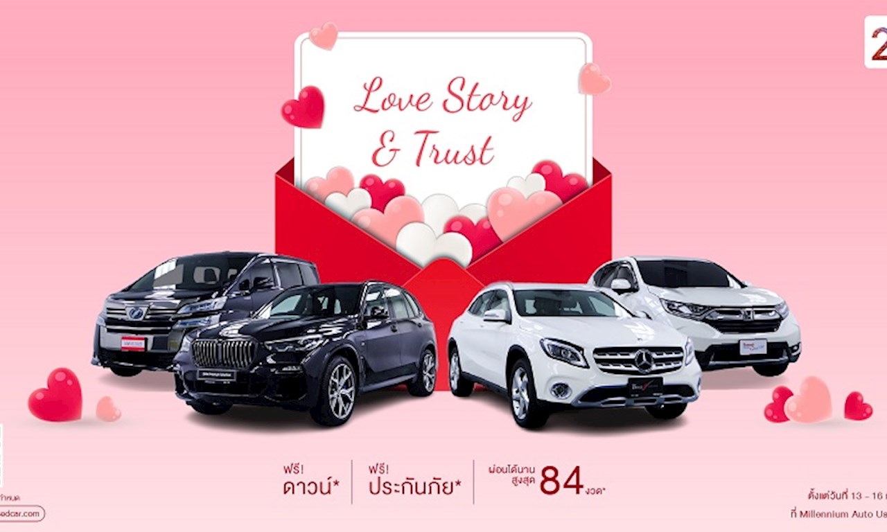 มาสเตอร์ เซอร์ทิฟายด์ ยูสคาร์ ศูนย์รวมรถยนต์มือสองครบวงจร ภายใต้บริษัท มิลเลนเนียม กรุ๊ป คอร์ปอเรชั่น (เอเชีย) จำกัด (มหาชน) ต้อนรับวันวาเลนไทน์ ด้วยแคมเปญ ‘Love Story & Trust’ ยกทัพยนตรกรรมระดับพรีเมียม ไมล์น้อย ราคาดี การันตีคุณภาพ มาให้เลือกสรรแบบจุใจ ให้ลูกค้าได้รับความคุ้มค่าตลอดเดือนกุมภาพันธ์นี้ ที่โชว์รูม มาสเตอร์ เซอร์ทิฟายด์ ยูสคาร์, บีเอ็มดับเบิลยู เซอร์ทิฟายด์ ยูสคาร์ บาย มิลเลนเนียม ออโต้ และ ซัมมิท ฮอนด้า ยูสคาร์ ทุกสาขา