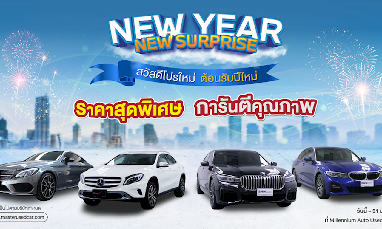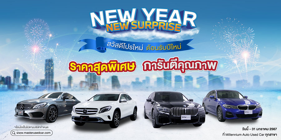 บริษัท มาสเตอร์ เซอร์ทิฟายด์ ยูสคาร์ จำกัด ศูนย์รวมรถยนต์มือสองครบวงจร ภายใต้ บริษัท มิลเลนเนียม กรุ๊ป คอร์ปอเรชั่น (เอเชีย) จำกัด (มหาชน) ประเดิมปีใหม่ด้วยแคมเปญพิเศษ ‘NEW YEAR NEW SURPRISE’ ยกทัพยนตรกรรม BMW และ BENZ มือสอง ไมล์น้อย ราคาดี การันตีคุณภาพ มาให้เลือกสรรกันแบบจุใจกว่า 60 คัน พร้อมหลากหลายข้อเสนอพิเศษ วันนี้ ถึงสิ้นเดือนมกราคม 2567 ที่โชว์รูม มิลเลนเนียม ออโต้ ยูสคาร์ ทุกสาขา