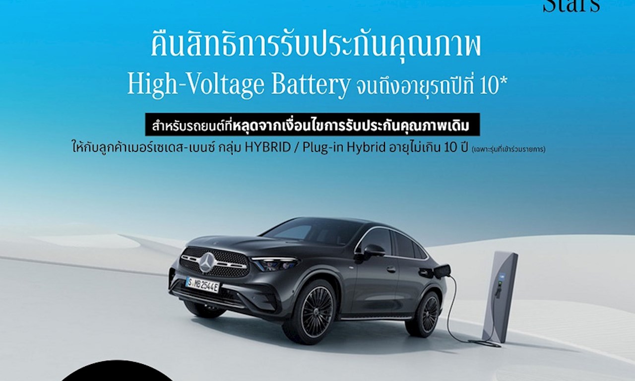 เมอร์เซเดส-เบนซ์ (ประเทศไทย) เปิดแคมเปญบริการหลังการขาย “Welcome Back Stars” ปีที่ 2 ชวนลูกค้ารถยนต์กลุ่ม Hybrid และ Plug-in Hybrid ที่มีอายุการใช้งานไม่เกิน 10 ปี ให้กลับมารับสิทธิการรับประกันคุณภาพแบตเตอรี่แรงดันสูง (High-Voltage Battery) เป็นระยะเวลาสูงสุดถึง 10 ปี* นับตั้งแต่วันที่ส่งมอบรถ สำหรับลูกค้าที่เคยหลุดจากเงื่อนไขการรับประกันคุณภาพเดิม โดยครอบคลุมรถยนต์กว่า 22 รุ่น ตามรุ่นรถยนต์และรหัสตัวถังที่กำหนด สำหรับลูกค้าที่สนใจสามารถนำรถยนต์เข้ามารับบริการและตรวจสอบสิทธิการรับประกันของรถยนต์ในแต่ละกลุ่ม ได้ที่ศูนย์บริการเมอร์เซเดส-เบนซ์ อย่างเป็นทางการ ทั่วประเทศ ตั้งแต่วันที่ 15 กรกฎาคม 2568 – 31 ธันวาคม 2568