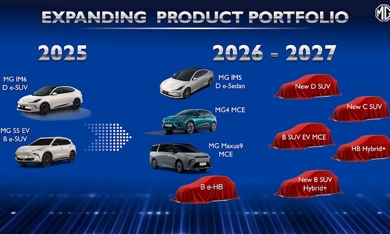 ภายใต้กลยุทธ์ “Dual Track” เอ็มจี เดินหน้าพัฒนาผลิตภัณฑ์ทั้งกลุ่มรถยนต์เครื่องยนต์สันดาป รถยนต์ไฮบริด และรถยนต์ไฟฟ้า ควบคู่กันอย่างชัดเจน พร้อมเปิดตัวรถใหม่อย่างต่อเนื่องในแต่ละไตรมาส เพื่อสร้างความสดใหม่ให้กับตลาด พร้อมรักษาความต่อเนื่องของไลน์อัปสินค้า และทำให้ผลิตภัณฑ์ของ เอ็มจี ตอบโจทย์ความต้องการของผู้บริโภคครอบคลุมในทุกเซกเมนต์ รวมถึงการนำ “เทคโนโลยีอัจฉริยะ” มาเป็นแกนหลักในการพัฒนาผลิตภัณฑ์ เพื่อสร้างความแตกต่างและยกระดับมาตรฐานตลาดรถยนต์ไทย ในปี 2026 เอ็มจี มีแผนขยายพอร์ตโฟลิโอรถยนต์ไฟฟ้าอย่างชัดเจน เริ่มตั้งแต่งานมอเตอร์โชว์ ด้วยการเปิดตัว MG IM5 ในกลุ่มพรีเมียมอีวี พร้อมด้วย NEW MG MAXUS 9 MCE ในกลุ่ม e-MPV และ NEW MG4 ELECTRIC MINORCHANGE เพื่อเสริมความแข็งแกร่งให้ไลน์อัปยอดนิยมของแบรนด์ ภายในไตรมาสที่สอง มีแผนเปิดตัวรถ EV ในกลุ่ม B-Segment สำหรับตลาดหลัก พร้อมพัฒนาปรับปรุงรุ่นปัจจุบันให้ตอบโจทย์ไลฟ์สไตล์ของผู้บริโภคชาวไทยมากยิ่งขึ้น ขณะเดียวกัน เอ็มจี จะเดินหน้าเทคโนโลยี HYBRID+ อย่างต่อเนื่อง และเตรียมเปิดตัวรถไฮบริดรุ่นใหม่ภายในปีนี้ เพื่อสนับสนุนลูกค้าในช่วงเปลี่ยนผ่านสู่การใช้พลังงานไฟฟ้า นอกจากนี้ ในปี 2027 เอ็มจี มีแผนเปิดตัวรถใหม่รวม 5 รุ่น โดยย้ำจุดยืนชัดเจนว่า ไม่ได้มุ่งเน้นการเพิ่มจำนวนรุ่นเพียงอย่างเดียว แต่จะเปิดตัว “รถที่ใช่ ในเซกเมนต์ที่ใช่ และในเวลาที่เหมาะสม”