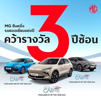 เอ็มจี รับรางวัลรถยนต์ยอดเยี่ยม 3 ปีต่อเนื่อง
