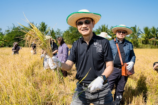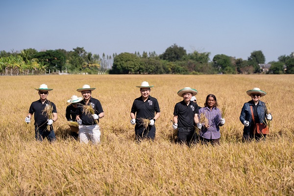บริษัท พีทีจี เอ็นเนอยี จำกัด (มหาชน) ตระหนักถึงผลกระทบจากการเปลี่ยนแปลงสภาพภูมิอากาศที่เกิดขึ้นอย่างต่อเนื่อง และให้ความสำคัญกับการดำเนินธุรกิจอย่างมีความรับผิดชอบต่อสิ่งแวดล้อม ซึ่งมีความมุ่งมั่นสนับสนุนเป้าหมาย Net Zero ของประเทศไทย โดยได้ร่วมมือกับบริษัท เวฟ บีซีจี จำกัด (WAVE BCG) นำร่องโครงการ “ข้าวยั่งยืน ลดมีเทน ด้วยนาเปียกสลับแห้ง” ใช้เทคนิคการบริหารจัดการน้ำในนาข้าวแบบ Alternate Wetting and Drying (AWD) หรือการปล่อยให้ระดับน้ำขัง และแห้งสลับกันเป็นช่วงเวลาอย่างเหมาะสม กระบวนการดังกล่าวเริ่มจากการบริหารจัดการระดับน้ำอย่างเป็นระบบ โดยขังน้ำในระยะเริ่มต้นเพื่อให้ต้นข้าวตั้งตัวได้อย่างมั่นคง แล้วปล่อยน้ำให้แห้งสลับเปียกเป็นรอบ ๆ เพื่อเปิดทางให้ดินได้รับออกซิเจนอย่างเต็มที่ ซึ่งช่วยกระตุ้นระบบรากให้แข็งแรงและดูดซึมแร่ธาตุได้ดียิ่งขึ้น หัวใจสำคัญของเทคนิคนี้คือการตัดวงจรการเกิดสภาวะไร้ออกซิเจนในชั้นดิน ซึ่งเป็นต้นตอของการผลิตก๊าซมีเทน ส่งผลให้สามารถลดการปล่อยก๊าซเรือนกระจกได้อย่างมีประสิทธิภาพ อีกทั้งการทำนาแบบเปียกสลับแห้งยังช่วยฟื้นฟูระบบนิเวศในแปลงนาให้สมดุล เอื้อต่อการเจริญเติบโตของจุลินทรีย์ที่มีประโยชน์ และเสริมสร้างภูมิต้านทานให้ต้นข้าวทนต่อสภาพอากาศที่แปรปรวน นับเป็นการยกระดับข้าวไทยสู่มาตรฐานการผลิตระดับโลกที่ยั่งยืน
