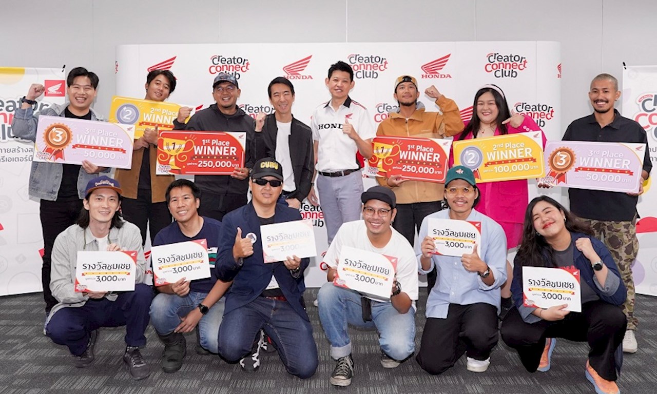 สิ้นสุดอย่างเป็นทางการแล้ว กับงาน “Thai Honda Creator Connect Club 2024: จุดประกายสร้างสรรค์สู่เส้นทางครีเอเตอร์มืออาชีพ” ที่เปิดพื้นที่ให้ครีเอเตอร์ไทยได้แสดงความคิดสร้างสรรค์กันอย่างเต็มที่ โดยรถจักรยานยนต์ฮอนด้า ได้ประกาศผลผู้ชนะทั้งหมด 6 ท่าน ที่ผ่านการคัดเลือกอย่างเข้มข้นและมีผลงานโดดเด่นจากหลากหลายแพลตฟอร์ม ซึ่งเหล่าผู้ชนะทั้งหมดจะได้รับรางวัลมูลค่ารวมกว่า 800,000 บาท และยังได้รับโอกาสพิเศษในการสร้างคอนเทนต์ร่วมกับรถจักรยานยนต์ฮอนด้าในอนาคตอีกด้วย