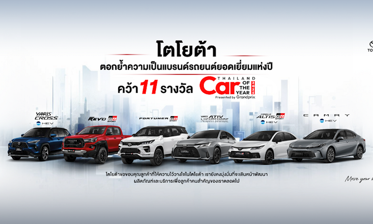 นายณัทธร ศรีนิเวศน์ ผู้ช่วยกรรมการผู้จัดการใหญ่ บริษัท โตโยต้า มอเตอร์ ประเทศไทย จำกัด นำทีมผู้บริหารขึ้นรับ 11 รางวัลรถยอดเยี่ยมแห่งปี “CAR OF THE YEAR 2025” จาก นายพงศ์พล ยอดเมืองเจริญ เลขานุการรัฐมนตรีว่าการกระทรวงอุตสาหกรรม เมื่อวันที่ 7 มีนาคม 2568 ณ ห้องรอยัล จูบิลี่ บอลรูม อาคารชาเลนเจอร์ ศูนย์แสดงสินค้าและการประชุมอิมแพ็ค เมืองทองธานี โดยรางวัลที่ได้รับมีดังต่อไปนี้