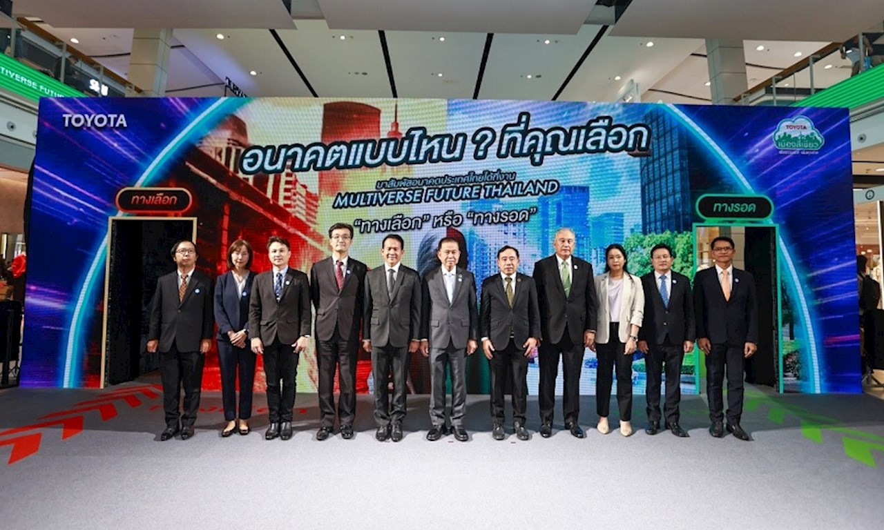 นายนินนาท ไชยธีรภิญโญ ที่ปรึกษากิตติมศักดิ์ บริษัท โตโยต้า มอเตอร์ ประเทศไทย จำกัด และ นายสุรภูมิ อุดมวงศ์ รองกรรมการผู้จัดการใหญ่ บริษัท โตโยต้า มอเตอร์ ประเทศไทย จำกัด พร้อมด้วยตัวแทนจากหน่วยงานพันธมิตร ภาครัฐ และภาคเอกชน ร่วมเป็นเกียรติในงานนิทรรศการ “Multiverse Future Thailand ทางเลือก หรือ ทางรอด” เพื่อสร้างความตระหนัก ถึงผลกระทบจากสถานการณ์ภาวะโลกเดือด ควบคู่ไปกับการกระตุ้นให้เกิดการลงมือปรับพฤติกรรม เมื่อวันที่ 17 มกราคม 2568 ณ ลาน Eden ชั้น 1 ศูนย์การค้าเซ็นทรัลเวิลด์