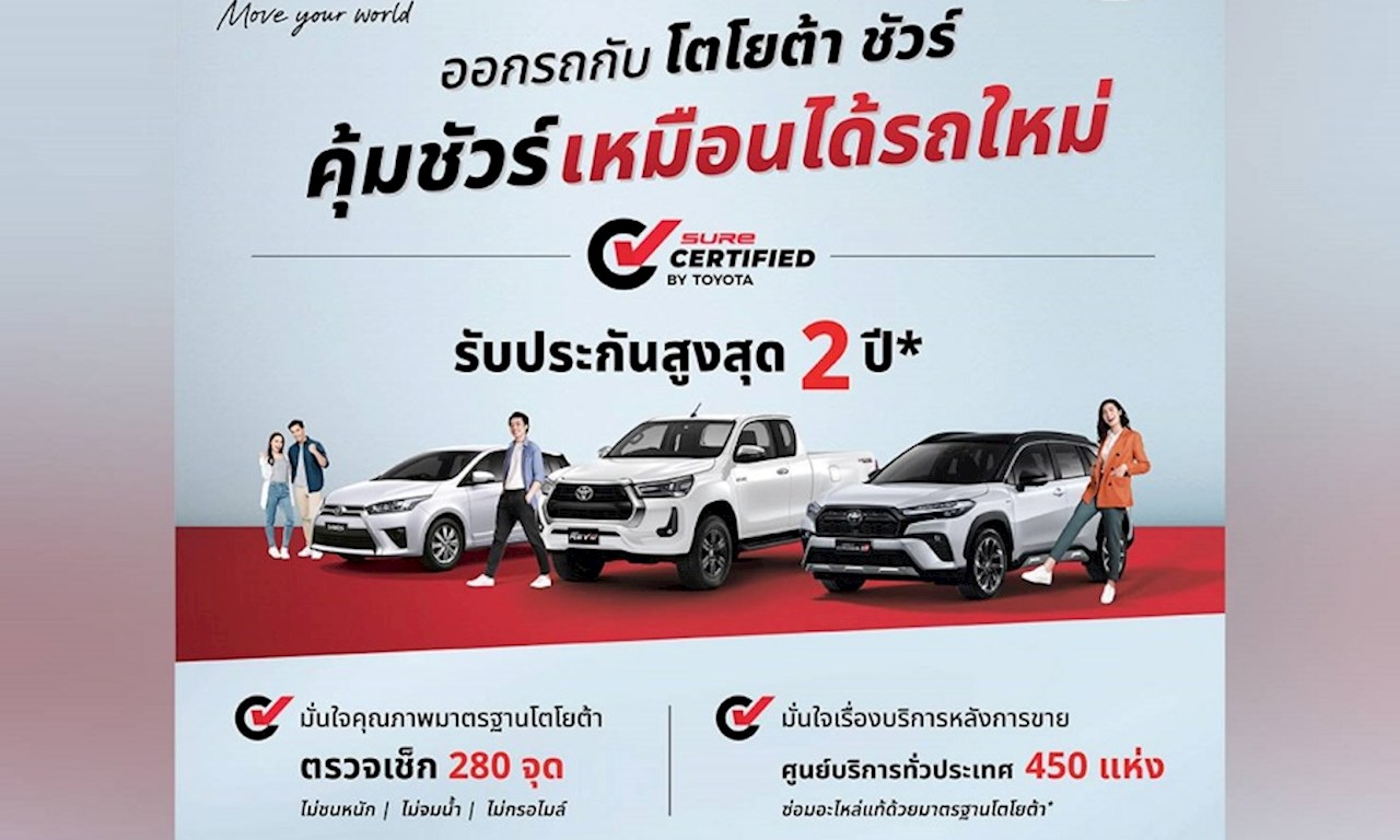 - รถใช้แล้ว Sure Certified by TOYOTA เริ่มจำหน่ายตั้งแต่ 1 มิถุนายน 2567 เป็นต้นไป