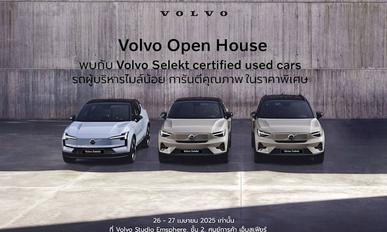 วอลโว คาร์ ประเทศไทย เปิดโอกาสให้ผู้สนใจสามารถเป็นเจ้าของรถวอลโว่ได้ง่ายขึ้นกับ กิจกรรม Volvo Open House งานจำหน่ายรถผู้บริหาร รถทดลองขับ รถป้ายแดงเลขไมล์น้อย ที่ได้รับการรับประกันคุณภาพจากแบรนด์วอลโว่ซึ่งนำมาให้ผู้สนใจเลือกสรร ในราคาพิเศษเริ่มต้นเพียง 1,290,000 บาท สำหรับ Volvo EX30 และรถทุกรุ่นที่จัดแสดงในงานยังมาพร้อม ฟรีประกันชั้น 1, แพ็คเกจรับประกันคุณภาพและบำรุงรักษาหลังการขาย Volvo Premium Service Package – Pro (VPSP Pro) และอื่น ๆ อีกมากมาย ระหว่างวันที่ 26 - 27 เมษายน 2025 เท่านั้น ที่ Volvo Studio EmSphere ชั้น 2 ห้างสรรพสินค้า เอ็มสเฟียร์