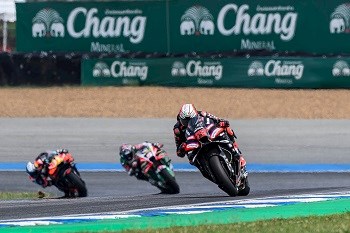 ศึกมอเตอร์สปอร์ตสองล้อเบอร์หนึ่งของโลก “โมโตจีพี” รายการ “พีที กรังด์ปรีซ์ ออฟ ไทยแลนด์” เปิดฤดูกาลในแผ่นดินไทยด้วยความมันส์ แฟนความเร็วจากทั่วโลกทยอยเข้าสู่สนามคึกคัก พร้อมถ่ายทอดสดสู่ทุกสายตาทั่วทุกมุมโลก เริ่มต้นการลงสนามวันแรก โดย มาร์โก เบซเซ็คคี ยอดนักบิดอิตาเลียนจาก อพริเลีย เรซซิ่ง โชว์ความเร็วระดับพระกาฬทุบสถิติตลอดกาลของ สนามช้าง อินเตอร์เนชั่นแนล เซอร์กิต จ.บุรีรัมย์ ลงอย่างราบคาบ ขณะที่แชมป์โลกคนปัจจุบันอย่าง มาร์ค มาร์เกซ จาก ดูคาติ เลอโนโว ทีม รั้งอันดับ 2 หลังผ่านการซ้อมวันแรก