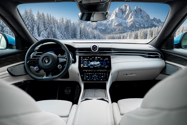 เพิ่มความโดดเด่นด้วยล้ออะลูมิเนียม CRIO ลายไดมอนด์คัต ขนาด 21 นิ้ว ผสานครีบกระจังหน้าพ่นสีเดียวกับตัวรถ ขณะที่ห้องโดยสารถ่ายทอดแรงบันดาลใจจากเทือกเขาที่ปกคลุมด้วยหิมะ ตกแต่งด้วยหนังแท้หนังระดับพรีเมียมสีขาว ‘Ghiaccio’ ดูหรูหรา ที่มาพร้อมความสว่างและความบริสุทธิ์ ควบคู่กับรายละเอียดที่สะท้อนแนวคิดของความหรูหราในยุคใหม่ เรียบง่าย และเปี่ยมเอกลักษณ์ ตามแบบฉบับอิตาเลียนพันธุ์แท้