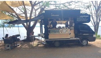ร้านเล็ก ๆ ในตู้ฟู้ดทรัค แต่รสชาติไม่เล็กเลย! เบอร์เกอร์เริ่มต้นเพียง 40 บาท แต่ได้วิวภูเขาและอ่างเก็บน้ำบางพระเป็นฉากหลัง ลมเย็น ๆ พัดผ่าน เสียงน้ำกระทบฝั่งเบา ๆ บางครั้ง ความสุขมันก็อยู่แค่การได้ “นั่งเฉย ๆ แล้วปล่อยให้ลมพัดหน้า” เท่านั้นเอง
