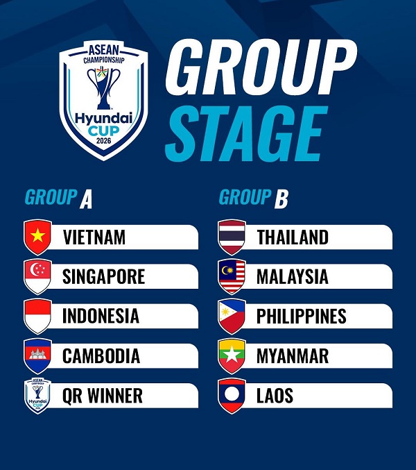 ขณะที่ ทีมชาติไทย ชาติที่ประสบความสำเร็จมากที่สุดในประวัติศาสตร์รายการนี้ จากการคว้าแชมป์ในปี 1996, 2000, 2002, 2014, 2016, 2020 และ 2022 ถูกจับสลากอยู่ใน กลุ่มบี ร่วมกับ ฟิลิปปินส์, เมียนมา และ ลาว