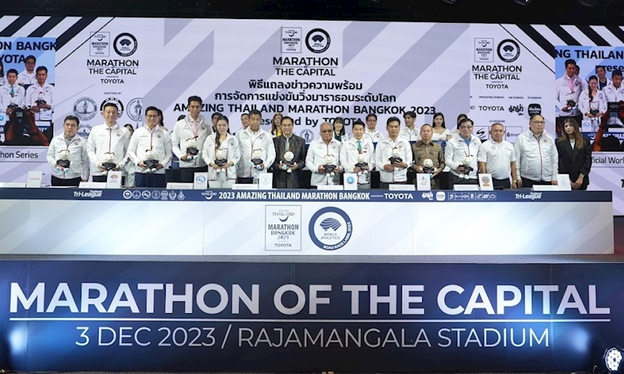 เมื่อวันที่ 1 พฤศจิกายน 2566 ณ ห้องประชุม Convention hall อาคาร TOYOTA ALIVE นางสาวสุดาวรรณ หวังศุภกิจโกศล รัฐมนตรีว่าการกระทรวงการท่องเที่ยวและกีฬา ได้มอบหมายให้ นายณณัฏฐ์ หงษ์ชูเวช ที่ปรึกษารัฐมนตรีว่าการกระทรวงการท่องเที่ยวและกีฬา ร่วมแถลงข่าวความพร้อม ในการจัดการแข่งขันวิ่งมาราธอนส่งเสริมการท่องเที่ยวระดับโลกรายการ “อะเมซิ่งไทยแลนด์มาราธอนแบงค็อก พรีเซ็นต์บายโตโยต้า” ครั้งที่ 6 ท่ามกลางแขกผู้มีเกียรติ ทั้งนางสาวฐาปนีย์ เกียรติไพบูลย์ ผู้ว่าการการท่องเที่ยวแห่งประเทศไทย นายชัชชาติ สิทธิพันธุ์ ผู้ว่าราชการกรุงเทพมหานคร Mr. Alessio Punzi ผู้อำนวยการอาวุโสสมาคมกรีฑาโลก นายอภิชัย ฉัตรเฉลิมกิจ รองผู้ว่าการด้านสินค้าและธุรกิจท่องเที่ยว การท่องเที่ยวแห่งประเทศไทย นายศานนท์ หวังสร้างบุญ รองผู้ว่าราชการกรุงเทพมหานคร นายสุรศักดิ์ เกิดจันทึก รองผู้ว่าการฝ่ายยุทธศาสตร์และเทคโนโลยีสารสนเทศ การกีฬาแห่งประเทศไทย พันตำรวจเอก สันทัด ลยางกูร รองผู้บังคับการตำรวจนครบาล นายสุชาติ แจสุรภาพ ประธานกรรมการมาตรฐานการวิ่ง สมาคมกีฬากรีฑาแห่งประเทศไทยฯ นายกอบเกียรติ แสงวนิชย์ ผู้อำนวยการจัดการแข่งขันฯ นายณัทธร ศรีนิเวศน์ รักษาการผู้ช่วยกรรมการผู้จัดการใหญ่ บริษัท โตโยต้า มอเตอร์ ประเทศไทย จำกัด ผู้สนับสนุนภาคเอกชน, สื่อมวลชน และเหล่านักวิ่งที่มาร่วมงานอย่างคับคั่ง