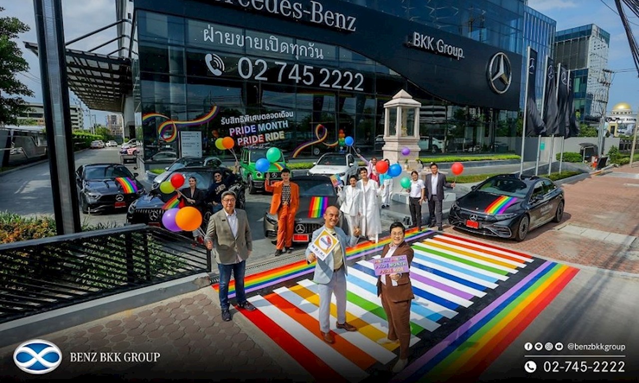 เบนซ์ บีเคเค กรุ๊ป-บางนา Mercedes-Benz Experience Center ที่ใหญ่ที่สุดในเอเชีย จับมือ สีพ่นรถยนต์ระดับพรีเมียม GLASURIT (สีนกแก้ว) ผู้นำด้านสีพ่นรถยนต์ระบบสีสูตรน้ำสุดยอดเทคโนโลยีสีจากประเทศเยอรมนี ร่วมเฉลิมฉลองเทศกาล ‘Pride Month’ ด้วยสีสันแห่งความหลากหลาย ภายใต้แคมเปญ Pride Month Pride Ride ยกโชว์รูม และรถยนต์ เมอร์เซเดส-เบนซ์ คันโปรดให้เป็นพื้นที่ปลอดภัยสำหรับทุกคน พร้อมเนรมิตทางม้าลายสีรุ้ง เชื่อมต่อทุกพื้นที่ @โชว์รูม เบนซ์ บีเคเค บางนา ตลอดเดือนมิถุนายนนี้