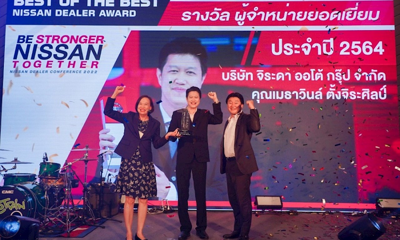 นิสสัน ประเทศไทย มอบรางวัลผู้จำหน่ายยอดเยี่ยม ประจำปี 2564 ฉลองความสำเร็จให้แก่ผู้จำหน่ายที่มีผลงานโดดเด่นทั่วประเทศ ในปีนี้ บริษัท จิระดา ออโต้ กรุ๊ป จำกัด สำนักงานใหญ่ได้รับรางวัลผู้จำหน่ายยอดเยี่ยมระดับประเทศ (Best of the Best Award 2021) ด้วยผลงานที่ยอดเยี่ยมในทุกด้าน โดยได้มีการมอบรางวัลในงานประชุมผู้จำหน่ายประจำปี 2565