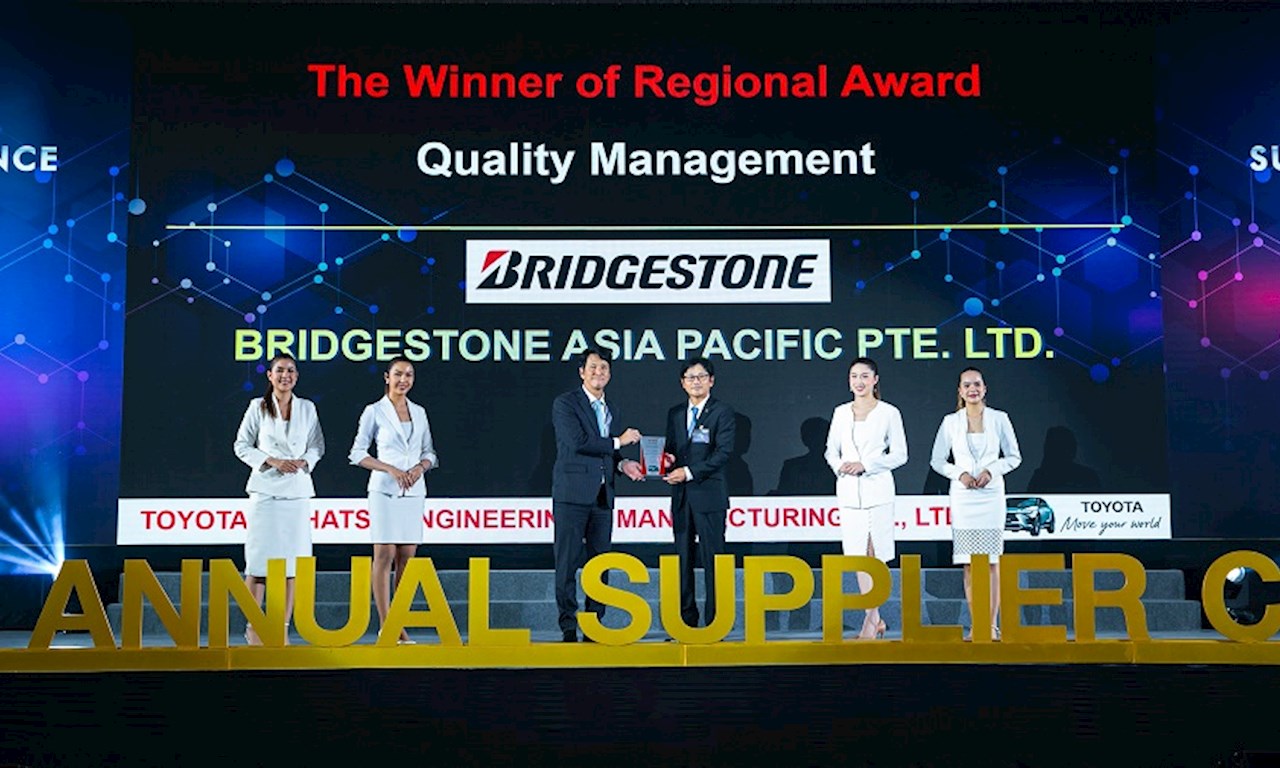 บริดจสโตนได้รับ 2 รางวัล อันทรงเกียรติจาก บริษัท โตโยต้า ไดฮัทสุ เอ็นจิเนียริ่ง แอนด์ แมนูแฟคเจอริ่ง จำกัด (TDEM) จากงานประกาศรางวัล “2023 TDEM Annual Supplier Conference” โดยบริษัท บริดจสโตน เอเชียแปซิฟิก จำกัด ภายใต้การบริหารงานของบริษัท บริดจสโตน คอร์ปอเรชั่น จำกัด ซึ่งเป็นผู้นำระดับโลกด้านผลิตภัณฑ์ยางรถยนต์และผลิตภัณฑ์อื่น ๆ ที่เกี่ยวข้องกับยาง ผ่านการส่งมอบโซลูชั่นเพื่อการเดินทางที่ปลอดภัยและยั่งยืน ได้รับรางวัล “2022 Regional Supplier Outstanding Performance ประเภท Quality Performance” ประจำปี 2565 ซึ่งได้รับต่อเนื่องเป็นปีที่ 3 จากการสนับสนุนกิจกรรมของ TDEM ผ่านเครือข่ายการผลิต การจัดจำหน่าย และการบริการครอบคลุมทั่วทั้งภูมิภาคอาเซียน และบริษัท ไทยบริดจสโตน จำกัด ได้รับรางวัล “2022 Outstanding Performance Supplier for Early Achievement of 2025 Target ประเภท Environment (CO2 Reduction)” ประจำปี 2565 จากความร่วมมือในการทำกิจกรรมลดการปล่อยก๊าซคาร์บอนไดออกไซด์ เพื่อมุ่งสู่ความเป็นกลางทางคาร์บอนตั้งแต่ต้นน้ำถึงปลายน้ำครอบคลุมห่วงโซ่คุณค่าได้ถึง 27.68% ภายในปี พ.ศ. 2565 จนสามารถบรรลุเป้าหมายล่วงหน้าของ TDEM ที่ตั้งไว้ 25% ภายในปี พ.ศ. 2568 ซึ่งการันตีคุณภาพและตอกย้ำความมุ่งมั่นของบริดจสโตนในการส่งมอบคุณค่าร่วม ตลอดจนพัฒนาและนำเสนอนวัตกรรมโซลูชั่นเพื่อสนับสนุนการเติบโตทางธุรกิจอย่างยั่งยืนไปด้วยกันกับ TDEM สะท้อนคุณค่าของ “Bridgestone E8 Commitment (พันธสัญญา E8 ของบริดจสโตน)” ใน “ด้าน Extension (การเติบโต)”, “ด้าน Efficiency (ประสิทธิภาพ)” และ “ด้าน Energy (พลังงาน)”