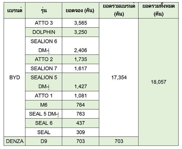รายละเอียดยอดจองของรถยนต์ BYD และ DENZA แต่ละรุ่น ในงานมอเตอร์โชว์ 2026