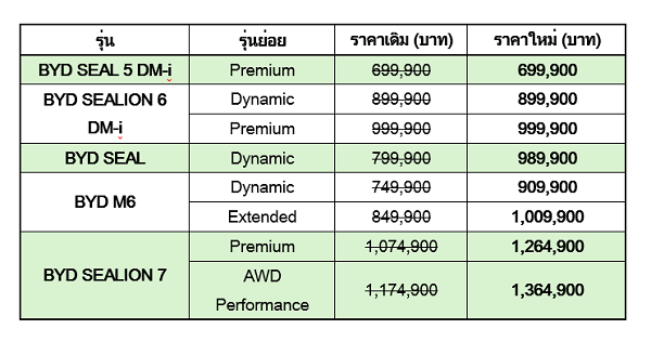 2. ราคาใหม่ของรถยนต์ บีวายดี ตามมาตรการ EV 3.5 ซึ่งพร้อมให้คุณเป็นเจ้าของแล้ว