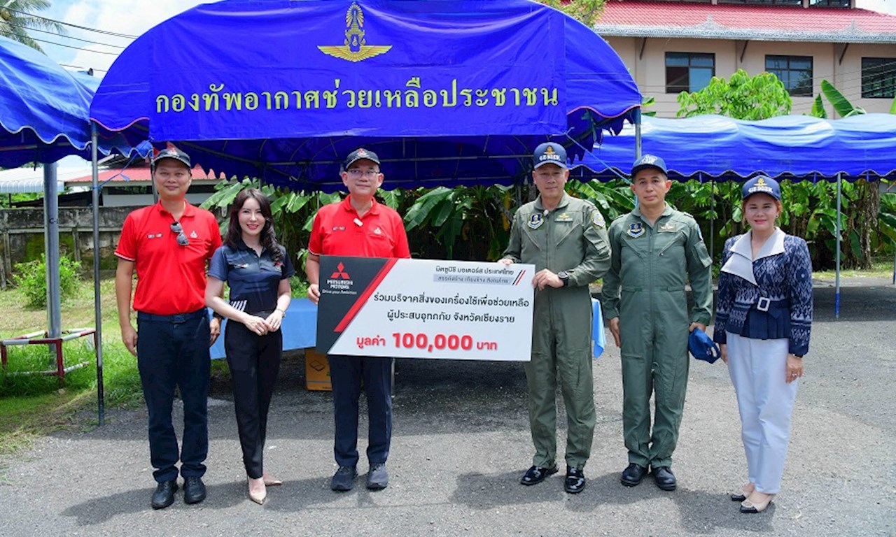 บริษัท มิตซูบิชิ มอเตอร์ส (ประเทศไทย) จำกัด ส่งต่อธารน้ำใจ ช่วยเหลือผู้ประสบภัยอุทกภัย ในจังหวัดเชียงราย โดยบริจาคสิ่งของเครื่องใช้รวมมูลค่า 100,000 บาท ให้กับกรมกิจการพลเรือนทหารอากาศ กองทัพอากาศไทย เพื่อสนับสนุนภารกิจบรรเทาทุกข์ของประชาชน สอดคล้องกับปณิธานของมิตซูบิชิ มอเตอร์ส ประเทศไทย ด้านโครงการเพื่อสังคม ภายใต้วิสัยทัศน์ “สรรค์สร้าง เคียงข้าง สังคมไทย” ใน 3 ด้านหลัก ได้แก่ สิ่งแวดล้อม การศึกษา และสุขภาพ