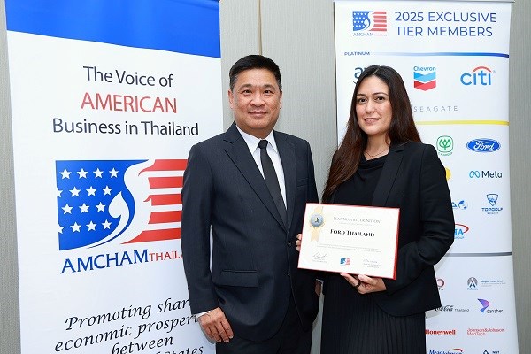 ฟอร์ด ประเทศไทย นำโดย นายรัฐการ จูตะเสน กรรมการผู้จัดการ ฟอร์ด ประเทศไทย รับรางวัลองค์กรที่มีความเป็นเลิศด้านการสร้างผลกระทบเชิงบวกแก่สังคมระดับแพลทินัม (Corporate Impact Award at Platinum Level) ต่อเนื่องเป็นปีที่ 15 จากหอการค้าอเมริกันในประเทศไทย (AMCHAM) โดยมี ฯพณฯ แคทเธอรีน สปิลแมน อัครราชทูตที่ปรึกษา สถานเอกอัครราชทูตสหรัฐอเมริกา ประจำประเทศไทย และนายไซม่อน เดนี กรรมการบริหารหอการค้าอเมริกันในประเทศไทย เป็นผู้มอบรางวัล