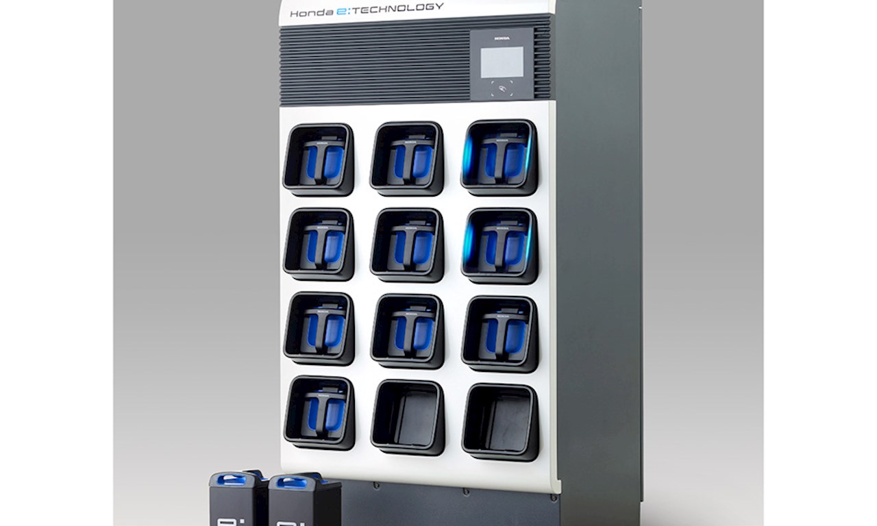 Honda Power Pack Exchanger e: เป็นสถานีเปลี่ยนแบตเตอรี่ที่ชาร์จ Honda Mobile Power Pack e หลายหน่วยพร้อมกัน: (MPP e:) และช่วยให้การสลับแบตเตอรี่ราบรื่นสำหรับผู้ใช้รถจักรยานยนต์ไฟฟ้าและผลิตภัณฑ์มือถืออื่นๆ ที่ติดตั้ง MPP e: ผู้ใช้จะสามารถเข้าถึง MPP e ที่ชาร์จเต็มแล้ว: เมื่อใดก็ตามที่จำเป็นที่สถานีเปลี่ยนแบตเตอรี่ในเมือง ซึ่งช่วยให้สามารถใช้ผลิตภัณฑ์เคลื่อนที่ที่ใช้ไฟฟ้าได้อย่างมีประสิทธิภาพโดยไม่ต้องรอให้แบตเตอรี่ชาร์จ