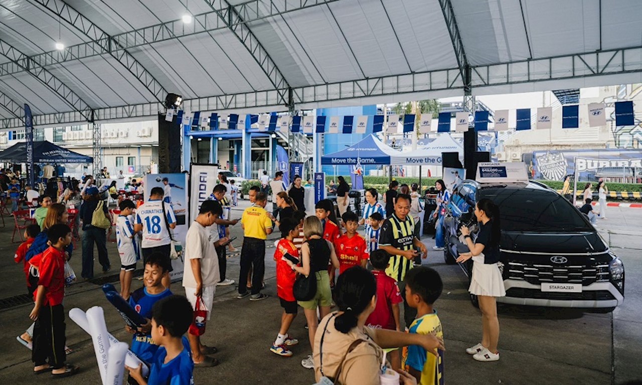 นอกจาก ความเร้าใจในสนามแข่งขัน ไฮไลต์ที่ดึงดูดสายตาแฟนบอลยังอยู่ที่การจัดแสดงยนตรกรรม 4 รุ่นเด่นจากฮุนได ไม่ว่าจะเป็น IONIQ 5 รถยนต์ไฟฟ้าสุดล้ำที่สะท้อนวิสัยทัศน์ด้านพลังงานสะอาด The all-new SANTA FE Hybrid เอสยูวีเจเนอเรชันใหม่ที่ผสานสมรรถนะและความอเนกประสงค์อย่างลงตัว Staria รถ MPV ขนาดใหญ่ 11 ที่นั่งสุดพรีเมียมที่ตอบโจทย์ทั้งครอบครัวและธุรกิจ ไปจนถึง Stargazer รถอเนกประสงค์ 6 ที่นั่ง ที่ออกแบบมาเพื่อครอบครัวรุ่นใหม่อย่างแท้จริง การนำยนตรกรรมเหล่านี้มาเผยโฉมท่ามกลางบรรยากาศฟุตบอล จึงไม่เพียงสร้างสีสันให้กับงาน แต่ยังตอกย้ำความมุ่งมั่นของฮุนไดในการเชื่อมโลกกีฬาเข้ากับวิสัยทัศน์การเดินทางแห่งอนาคต เปิดโอกาสให้ผู้บริโภคได้สัมผัสนวัตกรรมอย่างใกล้ชิดและจับต้องได้จริง