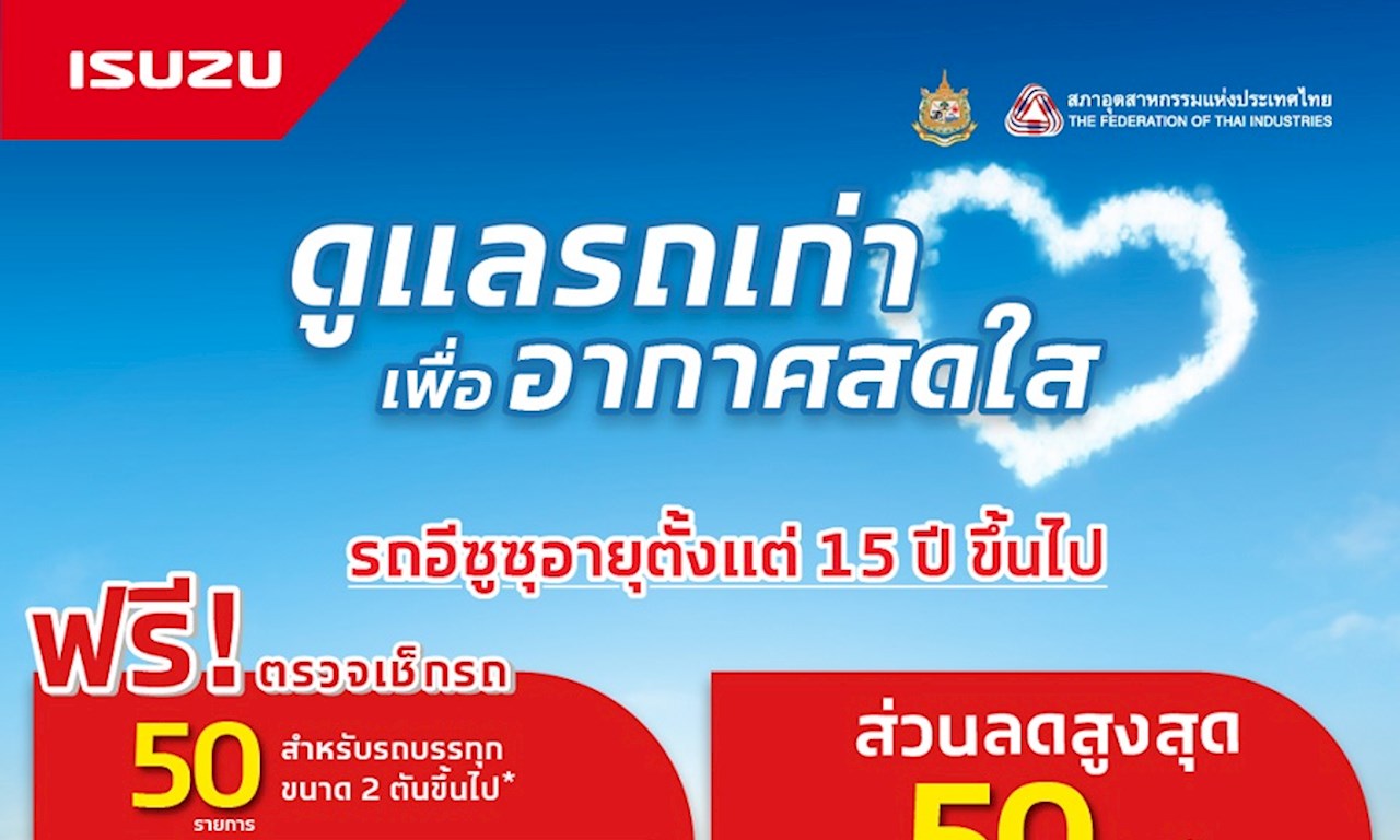 - รถอีซูซุที่มีอายุตั้งแต่ 20 ปี ขึ้นไป จะได้รับส่วนลด 50 %