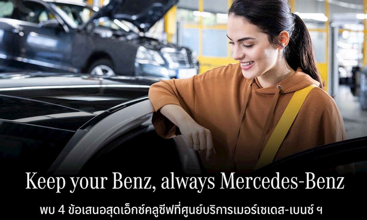 บริษัท เมอร์เซเดส-เบนซ์ (ประเทศไทย) จำกัด ส่งแคมเปญ “Keep your Benz, always Mercedes-Benz” เอาใจลูกค้าคนพิเศษของเมอร์เซเดส-เบนซ์ ด้วยการมอบประสบการณ์การบริการที่ดีที่สุดที่จะทำให้ลูกค้าทุกคนสามารถคงประสิทธิภาพและสมรรถนะสูงสุดของรถยนต์เมอร์เซเดส-เบนซ์ได้เหมือนวันแรกที่ใช้งาน พร้อมตอบโจทย์ความมุ่งมั่นในที่จะมอบบริการหลังการขายที่ดีเยี่ยมแก่ผู้ที่ครอบครองรถยนต์เมอร์เซเดส-เบนซ์ ทุกรุ่น