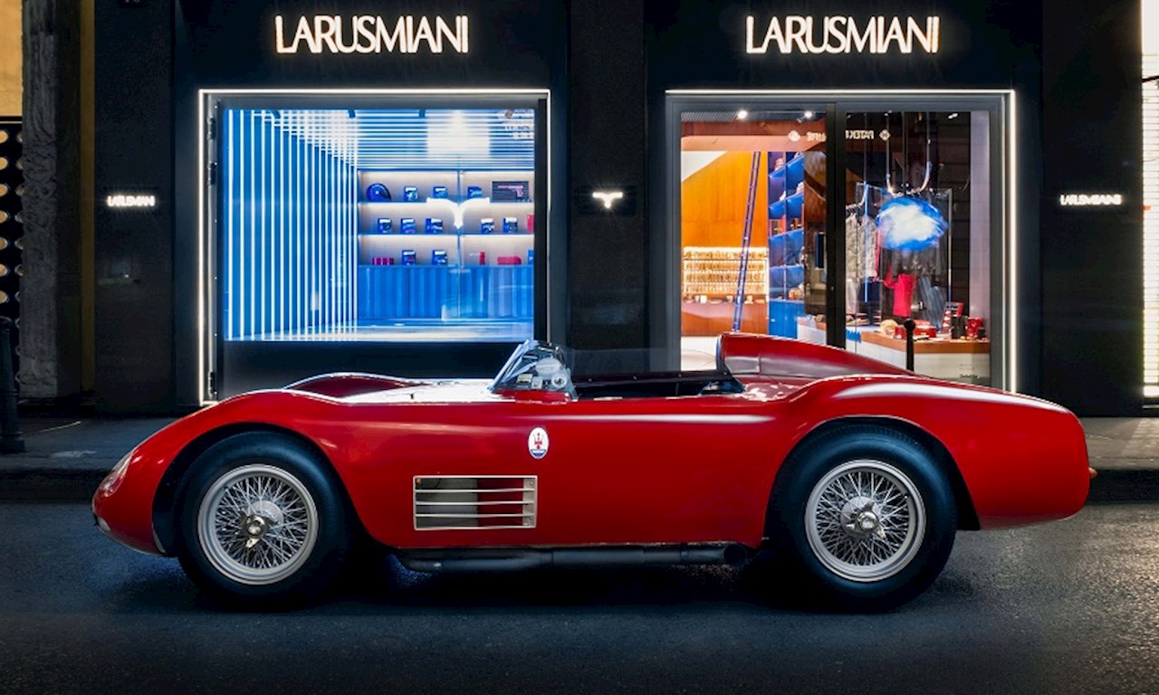 ช่วงเวลาของการจัดงาน Milan Design Week 2025 มาเซราติ ‘200S’ รถแข่งต้นแบบจากค่ายตรีศูล ที่ผลิตช่วงปี พ.ศ. 2498 ถึง 2500 ถูกนำมาจัดแสดงอย่างโดดเด่นในย่าน MonteNapoleone District สถานที่ซึ่งมีมนต์ขลัง และเป็นจุดกำเนิดของแบรนด์ LARUSMIANI อันเก่าแก่ ที่สะท้อนเอกลักษณ์ของนิยาม ‘Hand-Made in Italy’ มานานกว่าศตวรรษ