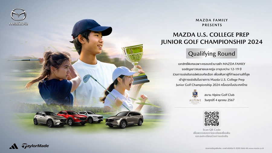 มาสด้าส่งเสริมเติมความฝันเยาวชนไทยสู่เส้นทางโปรกอล์ฟระดับโลก มอบโอกาสสุดเอ็กซ์คลูซีฟให้กับลูกค้าและครอบครัวผู้ใช้รถยนต์มาสด้า เพื่อคว้าสิทธิ์ในการเดินทางไปแข่งขันทัวร์นาเมนต์ใหญ่ในประเทศสหรัฐอเมริกา ประกาศเชิญชวนเยาวชนไทยทั้งชายและหญิงอายุระหว่าง 12-19 ปี สมัครเข้าร่วมการแข่งขันกอล์ฟรอบคัดเลือก ที่จัดขึ้นเพื่อเฟ้นหาผู้ที่ทำผลงานดีที่สุดเข้าสู่การแข่งขันรอบสุดท้ายร่วมกับนักกอล์ฟเยาวชนที่เดินทางมาจากทั่วโลก 128 คน ในโครงการ “MAZDA U.S. COLLEGE PREP JUNIOR GOLF CHAMPIONSHIP 2024” ซึ่งเป็นโครงการชั้นแนวหน้าระดับสากลที่เฟ้นหาและผลักดันเยาวชนกอล์ฟดาวเด่นให้ไปโลดแล่นบนเวทีระดับโลก ผู้ชนะเลิศจากการแข่งขันรอบสุดท้ายจะได้เดินทางไปร่วมการแข่งขันทัวร์นาเมนต์ใหญ่หลายรายการในประเทศสหรัฐอเมริกา รวมถึงเยาวชนที่มีความสามารถโดดเด่นก็มีโอกาสที่จะได้รับการเสนอทุนการศึกษาเพื่อปูทางก้าวสู่เส้นทางนักกอล์ฟมืออาชีพอีกด้วย นับเป็นโครงการดี ๆ ที่เยาวชนไทยผู้รักในกีฬากอล์ฟไม่ควรพลาด