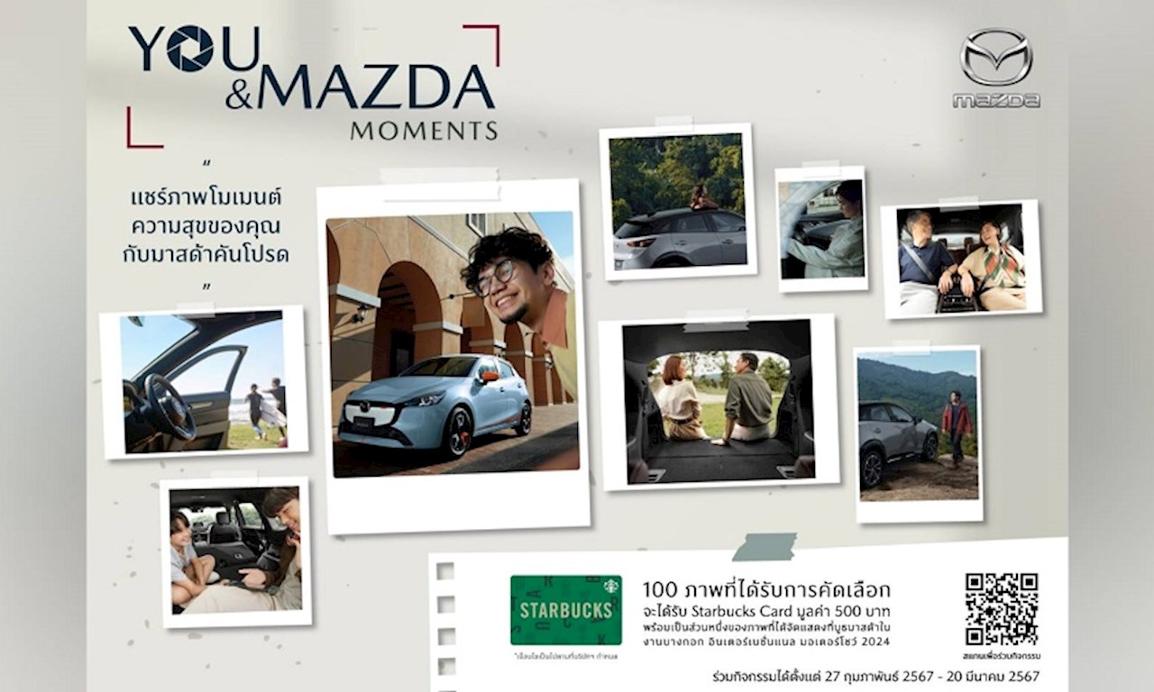 เพื่อพัฒนาความสัมพันธ์ให้แน่นแฟ้นยิ่งขึ้นระหว่างลูกค้าและแบรนด์มาสด้า ตอกย้ำถึงความสำคัญของการมีลูกค้าเข้ามาเป็นส่วนหนึ่งในทุกประสบการณ์การใช้ชีวิต มาสด้าขอเชิญลูกค้ามาร่วมถ่ายทอดเรื่องราวความประทับใจเหล่านี้ไปด้วยกัน ผ่านกิจกรรม “You and Mazda Moments” ด้วยการแชร์ภาพความประทับใจของคุณคู่กับรถมาสด้าคันโปรดผ่านช่องทางที่กำหนด ซึ่งมาสด้าจะรวบรวมภาพความสุขของลูกค้ามาสด้าเหล่านี้มาจัดเป็น Photo Gallery โซนสุดพิเศษและจัดแสดงในงานมอเตอร์โชว์ 2024 พร้อมทั้งประชาสัมพันธ์ในสื่อต่าง ๆ ของมาสด้า โดยแบ่งเป็นโซนพิเศษให้ประชาชนที่มาเข้าชมงานฯ ได้เห็นถึงความสุขในการขับขี่ที่เกิดขึ้นกับลูกค้ามาสด้าและครอบครัว”