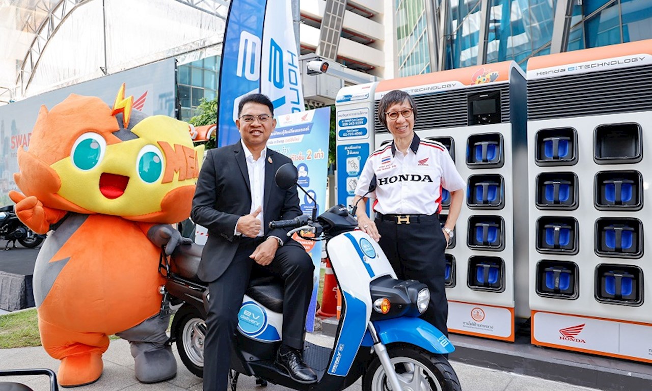 นายวิลาศ เฉลยสัตย์ ผู้ว่าการ MEA หรือการไฟฟ้านครหลวง เป็นประธาน เปิดงาน SWAP to ZERO: Innovating for Carbon-free future ร่วมด้วย ดร.อารักษ์ พรประภา ประธาน บริษัท ไทยฮอนด้า จำกัด ประกาศความร่วมมือใน “โครงการร่วมมือศึกษาความเป็นไปได้ทางธุรกิจ และทดลองการให้บริการสถานีสับเปลี่ยนแบตเตอรี่ ระหว่าง การไฟฟ้านครหลวง และ บริษัท ไทยฮอนด้า จำกัด ที่ได้ร่วมกันพัฒนาแนวทางความเป็นไปได้ และรูปแบบการศึกษาวิจัยทดลองเพื่อผลักดันให้เกิดการใช้งานรถจักรยานยนต์ไฟฟ้าในประเทศไทยอย่างยั่งยืนในอนาคต ณ สถานีสับเปลี่ยนแบตเตอรี่ การไฟฟ้านครหลวง (สำนักงานใหญ่) คลองเตย