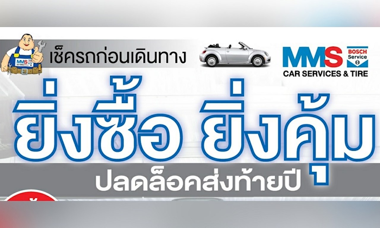 บริษัท มาสเตอร์ มอเตอร์ เซอร์วิสเซส (ประเทศไทย) จำกัด หรือ เอ็มเอ็มเอส บ๊อช คาร์ เซอร์วิส แอนด์ ไทร์ ภายใต้กลุ่มธุรกิจ มิลเลนเนียม กรุ๊ป คอร์ปอเรชั่น (เอเชีย) ศูนย์บริการรถยนต์ครบวงจร สำหรับรถญี่ปุ่นและยุโรปที่หมดระยะการรับประกัน จัดโปรโมชั่นส่งท้ายปี คุ้มค่ายิ่งขึ้น กับแคมเปญพิเศษ ‘ยิ่งซื้อ ยิ่งคุ้ม’ พร้อมโปรโมชั่นอื่น ๆ อีกหลายรายการ ให้ลูกค้าใช้รถได้อย่างมั่นใจ ในราคาสบายกระเป๋า ที่ศูนย์บริการ เอ็มเอ็มเอส บ๊อช คาร์ เซอร์วิส แอนด์ ไทร์ ทุกสาขา
