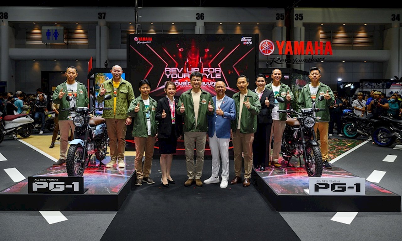 มร.ทัตสึยะ โนซากิ ประธานกรรมการบริหาร นายพงศธร เอื้อมงคลชัย รองประธานกรรมการบริหาร นายภาณุพล กิตติคำรณ รองผู้จัดการใหญ่ฝ่ายขาย บริการ และอะไหล่ พร้อมคณะผู้บริหารระดับสูง บริษัท ไทยยามาฮ่ามอเตอร์ จำกัด ถ่ายภาพร่วมกับนายชลัทชัย ปภัสร์พงษ์ รองกรรมการผู้จัดการ บริษัท สื่อสากล จำกัด และรองประธานจัดงาน นางวราทิพย์ เชยศักดิ์ กรรมการผู้จัดการ บริษัท มอเตอร์ไซเคิล เอ็กซ์โป จำกัด ในพิธีเปิดบูธ YAMAHA Rev Up For Your Style อย่างเป็นทางการ โดยในงานมหกรรมยานยนต์ครั้งที่ 40 ยามาฮ่าขนทัพรถจักรยานยนต์ทั้งสแตนดาร์ดไบค์ และบิ๊กไบค์มาร่วมจัดแสดงพร้อมโปรโมชันสุดพิเศษ พร้อมกับการเปิดตัว All New YAMAHA PG-1 อย่างเป็นทางการด้วยราคาแนะนำที่ 64,900 บาท