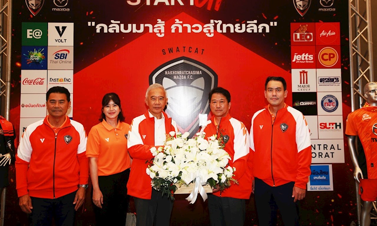 ทางด้านผู้สนับสนุนหลักอย่างเป็นทางการ มร. ทาดาชิ มิอุระ ประธานบริหาร บริษัท มาสด้า เซลส์ (ประเทศไทย) จำกัด กล่าวว่า มาสด้าให้ความสำคัญอย่างยิ่งต่อการพัฒนาวงการฟุตบอลไทย ด้วยการเข้ามาสนับสนุนฟุตบอลทีมสวาทแคท หรือ นครราชสีมา มาสด้า เอฟซี เมื่อ 11 ปีที่แล้ว ส่งผลให้วงการฟุตบอลไทยคึกคักทันตาเห็น โดยเฉพาะจำนวนแฟนบอลที่หลั่งไหลเข้าชมการแข่งขัน วันนี้ทีมสวาทแคทยังคงครองสถิติอันดับหนึ่งที่มีผู้เข้าชมมากที่สุดในไทยลีก ที่สำคัญ มาสด้ายังคงให้การสนับสนุนทีมสวาทแคทอย่างต่อเนื่องเช่นเดียวกับทุกปีที่ผ่านมา วันนี้ทุกคนต้องร่วมแรงร่วมใจกันลุกขึ้นสู้อีกครั้ง เพื่อก้าวขึ้นสู่ลีกสูงสุดของประเทศให้เร็วที่สุด ทุกคนต้องศรัทธาและเชื่อมั่นในสปิริตความเป็นนักสู้ของทีม ซึ่งมี DNA เช่นเดียวกับชาวมาสด้า เราไม่เคยยอมแพ้ต่ออุปสรรค เราเชื่อมั่นในสปิริตความเป็นนักสู้ เราฝ่าฟันอุปสรรคต่าง ๆ มามากมายกว่า 100 ปี และอยู่เคียงข้างคนไทยมา 73 ปี และเราจะยังคงอยู่เคียงข้างคนไทยตลอดไป