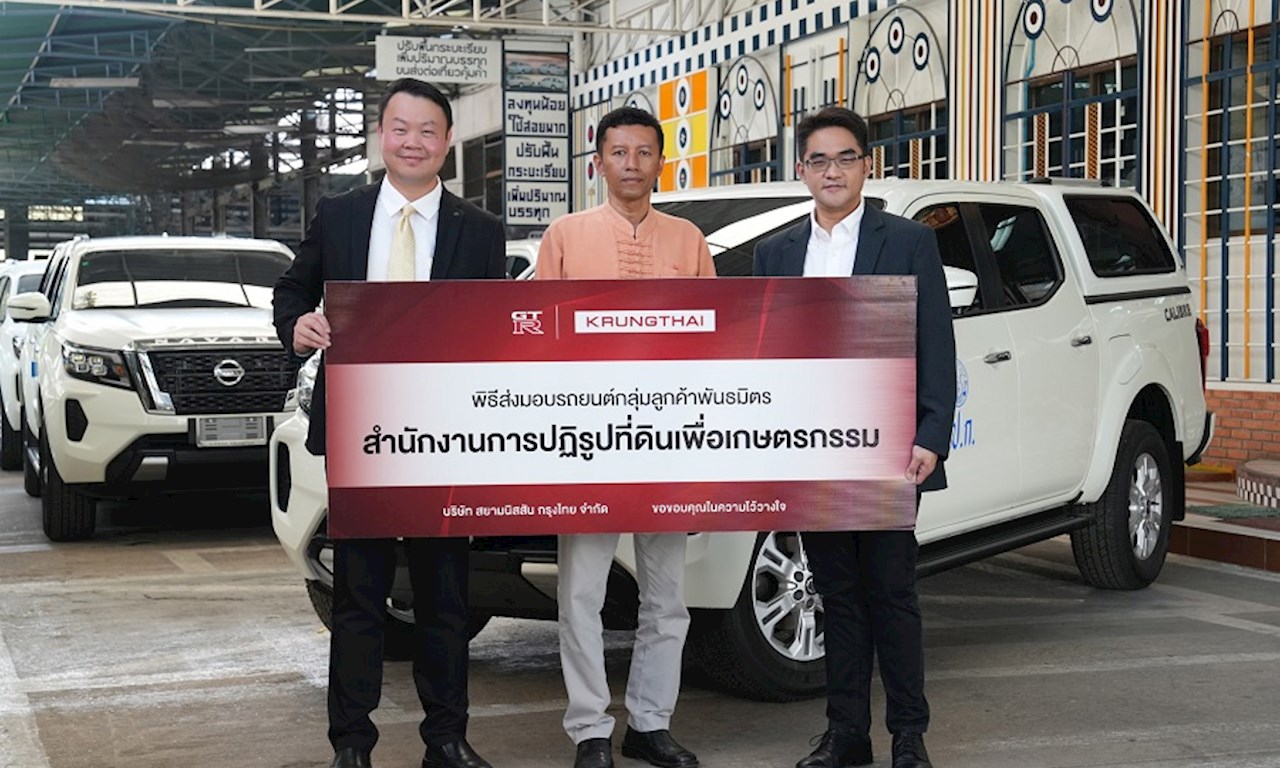 นิสสัน ประเทศไทย โดย คุณวฤทธิ์ ภักดียิ่งยง รองประธานสายงานขาย ร่วมกับ คุณพิสิทธิ์ จันทรเสรีกุล กรรมการผู้จัดการ สยามนิสสัน กรุงไทย ส่งมอบรถกระบะ นิสสัน นาวารา รุ่น คาลิเบอร์ จำนวน 64 คัน ให้กับสำนักงานการปฏิรูปที่ดินเพื่อการเกษตรกรรม โดยมี คุณวิสุทธิ์ เลิศไกร ผู้เชี่ยวชาญด้านการออกแบบและพัฒนาระบบการเกษตรในเขตปฏิรูปที่ดิน เป็นผู้รับมอบ