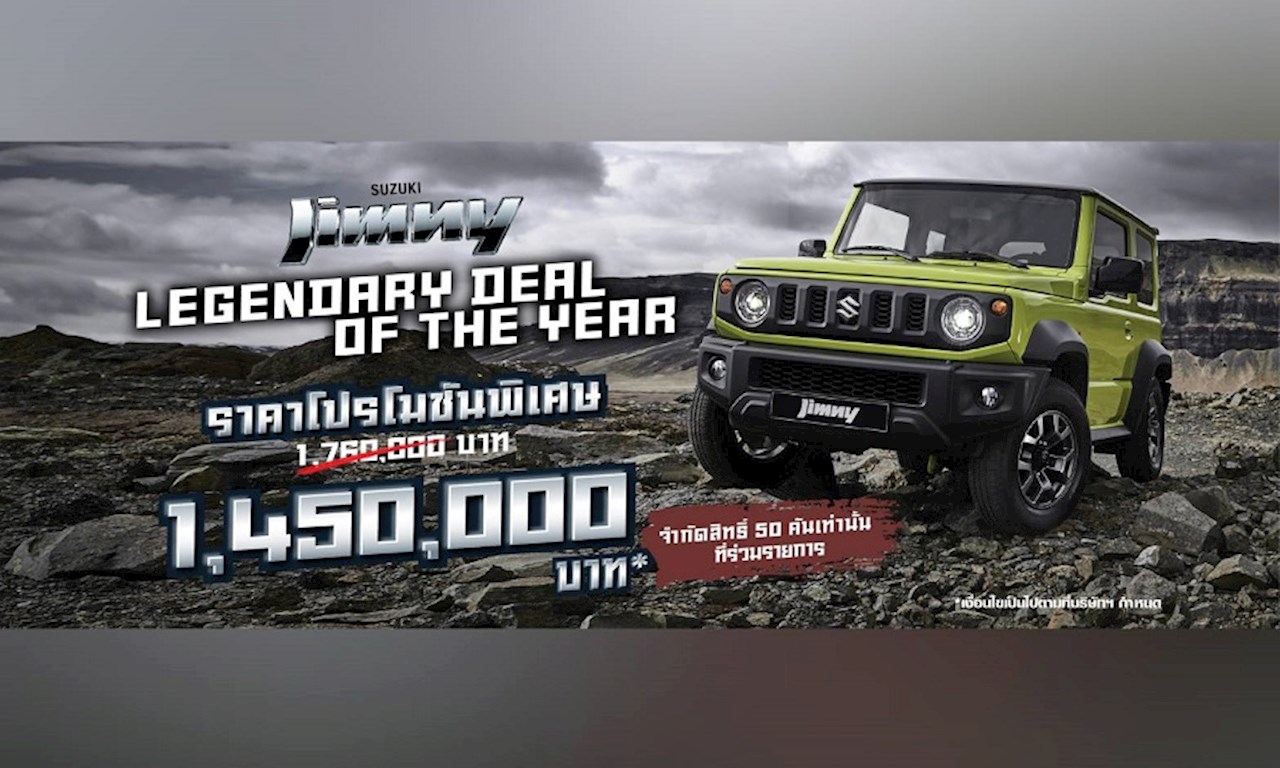 บริษัท ซูซูกิ มอเตอร์ (ประเทศไทย) จำกัด ประกาศแคมเปญสุดพิเศษ "Legendary Deal of the Year" ฉลองยอดขาย SUZUKI JIMNY ในประเทศไทยนับตั้งแต่เปิดตัวทะลุ 220 คัน เพื่อขอบคุณลูกค้าที่ให้การตอบรับอย่างดี จนทำให้ SUZUKI JIMNY กลายเป็นรถยนต์ออฟโรดไอคอนิกที่ประสบความสำเร็จอย่างต่อเนื่องในตลาด