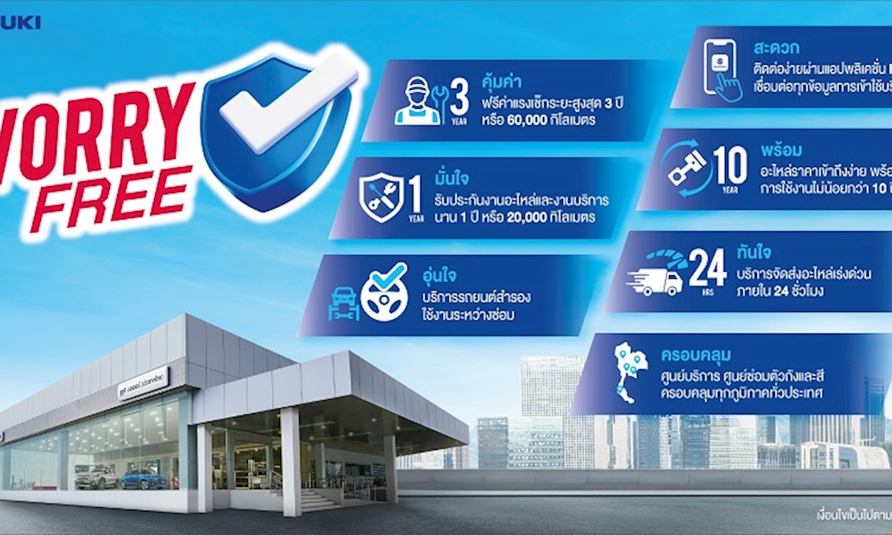อีกทั้ง ลูกค้ารถยนต์ซูซูกิยังมั่นใจได้ว่า เราจะมอบการดูแลและบริการด้วยคุณภาพและมาตรฐานที่ดีแก่ทุกท่าน ภายใต้แคมเปญ “SUZUKI WORRY FREE” ที่เริ่มมีผลบังคับใช้ตั้งแต่วันที่ 1 สิงหาคม 2567 ที่ผ่านมา โดยประกอบไปด้วยรายละเอียดการดูแลรถยนต์ของลูกค้า ทั้ง 7 หัวข้อดังนี้