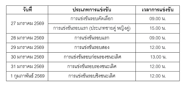 ตารางการแข่งขัน ปริ๊นเซส สิริวัณณวรี ไทยแลนด์ มาสเตอร์ส 2026