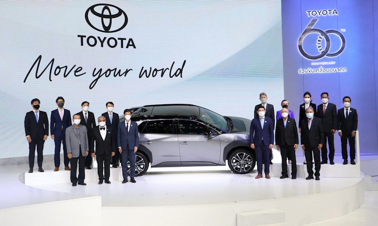 มร.โนริอากิ ยามาชิตะ กรรมการผู้จัดการใหญ่ บริษัท โตโยต้า มอเตอร์ ประเทศไทย จำกัด แถลงข่าวเปิดบูทโตโยต้า ในงาน บางกอก อินเตอร์เนชั่นแนล มอเตอร์โชว์ ครั้งที่ 43 (The 43rd Bangkok International Motor Show) นำเสนอวิสัยทัศน์ในโอกาสดำเนินธุรกิจเข้าสู่ปีที่ 60 ในประเทศไทย มุ่งสู่การเป็น “ผู้นำการขับเคลื่อนยุคใหม่ เพื่อเสริมสร้างความสุขของผู้คน และความยั่งยืนของสังคม” นำเสนอรถยนต์รุ่นล่าสุดหลากหลายรุ่น นำโดยรถยนต์ไฟฟ้าต้นแบบ Toyota bZ4X ที่จัดแสดงในประเทศไทยเป็นครั้งแรก ตอกย้ำความมุ่งมั่นในการสร้างสรรค์ “รถยนต์ลดการปล่อยคาร์บอน” ร่วมกับจุดยืนในการสร้างสังคมความเป็นกลางทางคาร์บอน (Carbon Neutrality) เพื่อ “การขับเคลื่อนสำหรับทุกคน” ได้อย่างอิสระเสรี (Mobility for All) และยานยนต์ไฟฟ้าแบตเตอรี่ ขับเคลื่อนอัตโนมัติ Toyota e-Pallete พร้อมด้วยการจัดแสดงยนตรกรรมโตโยต้าครบครันทุกรุ่น