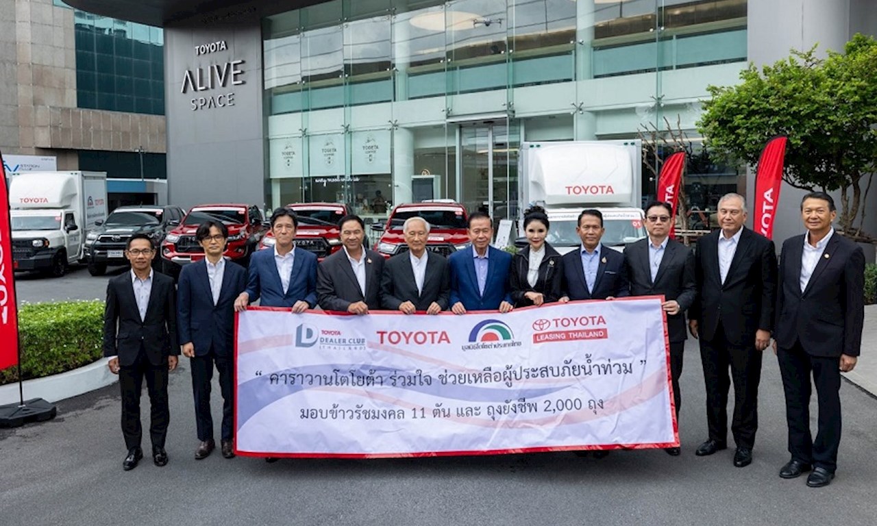 มูลนิธิโตโยต้าประเทศไทย บริษัท โตโยต้า มอเตอร์ ประเทศไทย จำกัด ชมรมผู้แทนจำหน่ายโตโยต้า ทั่วประเทศ และบริษัท โตโยต้า ลีสซิ่ง (ประเทศไทย) จำกัด มีความห่วงใยและตั้งใจในการร่วมช่วยเหลือคนไทยให้ก้าวผ่านวิกฤติครั้งนี้ไปด้วยกันโดยเร็วที่สุด จึงได้ร่วมมือกันสนับสนุนถุงยังชีพ จำนวน 2,000 ชุด ข้าวรัชมงคล 11 ตัน และสุขากระดาษจากมูลนิธิเอสซีจี (SCG Foundation) จำนวน 300 ชุด เพื่อนำไปแจกจ่ายให้กับประชาชนที่เดือดร้อนในแต่ละพื้นที่ และชุมชนที่อยู่บริเวณใกล้เคียงกับผู้แทนจำหน่ายฯ ตลอดจนส่งรถกระบะโตโยต้า ไฮลักซ์ รีโว่ และไฮลักซ์ แชมป์ จำนวนรวม 7 คัน เพื่อสนับสนุนการปฏิบัติภารกิจของเจ้าหน้าที่ในพื้นที่
